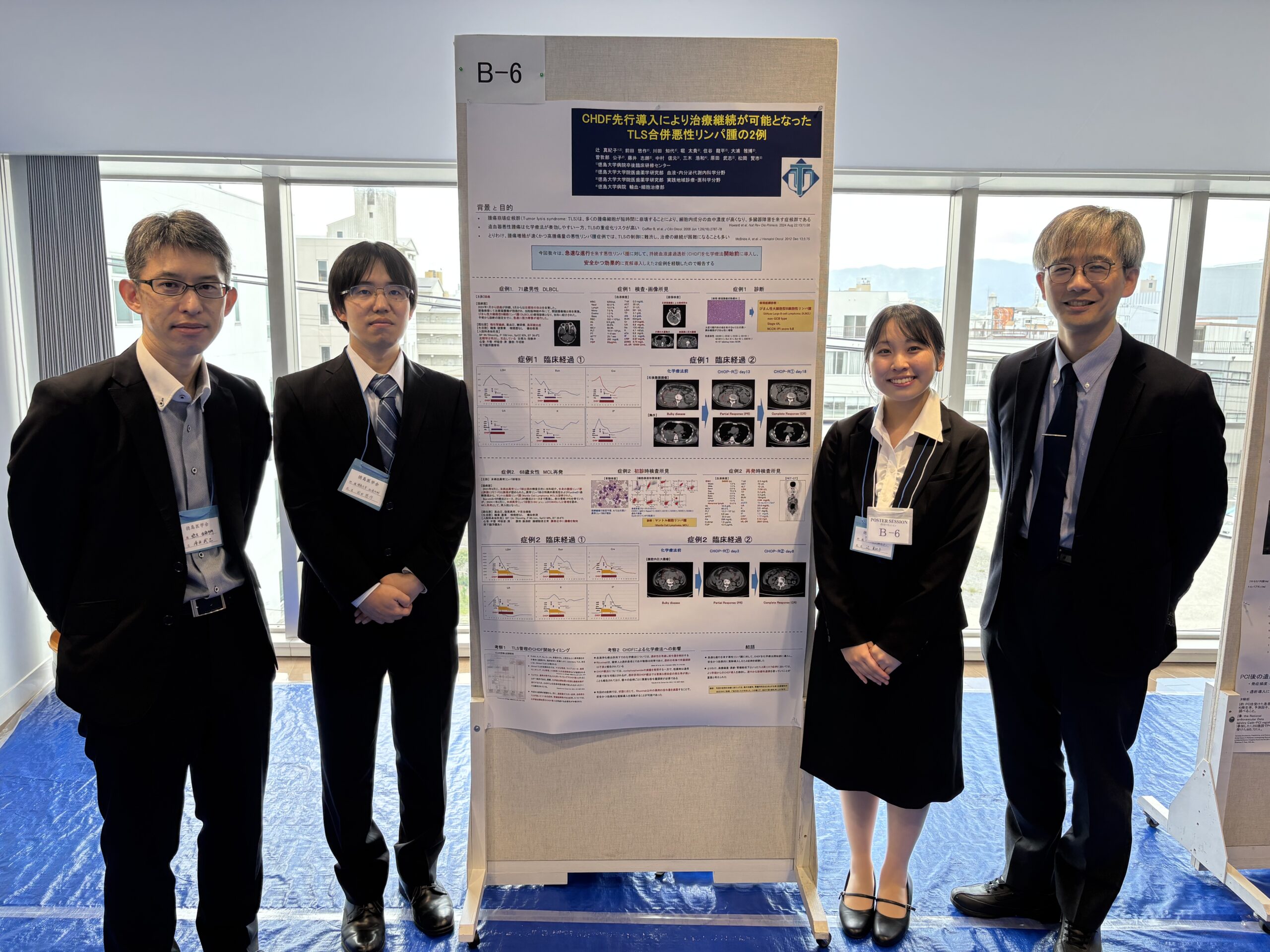 徳島県医師会館で開催された第271回徳島医学会学術集会において、研修医1年目の辻真紀子先生 (血液内科) がポスター発表を行いました。辻先生にとっては医師として初めての学術集会での発表でしたが、堂々と、非常に分かりやすく素晴らしい発表で、若手奨励賞を受賞されました。指導者としても、改めて若手医師の育成に尽力する重要性を再認識する良い機会となりました。